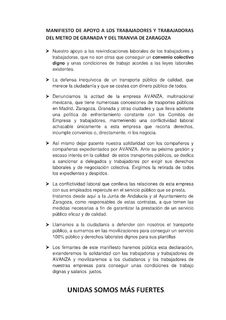 trabajadores y trabajadoras del Metro de Granada y del Tranvía de Zaragoza.